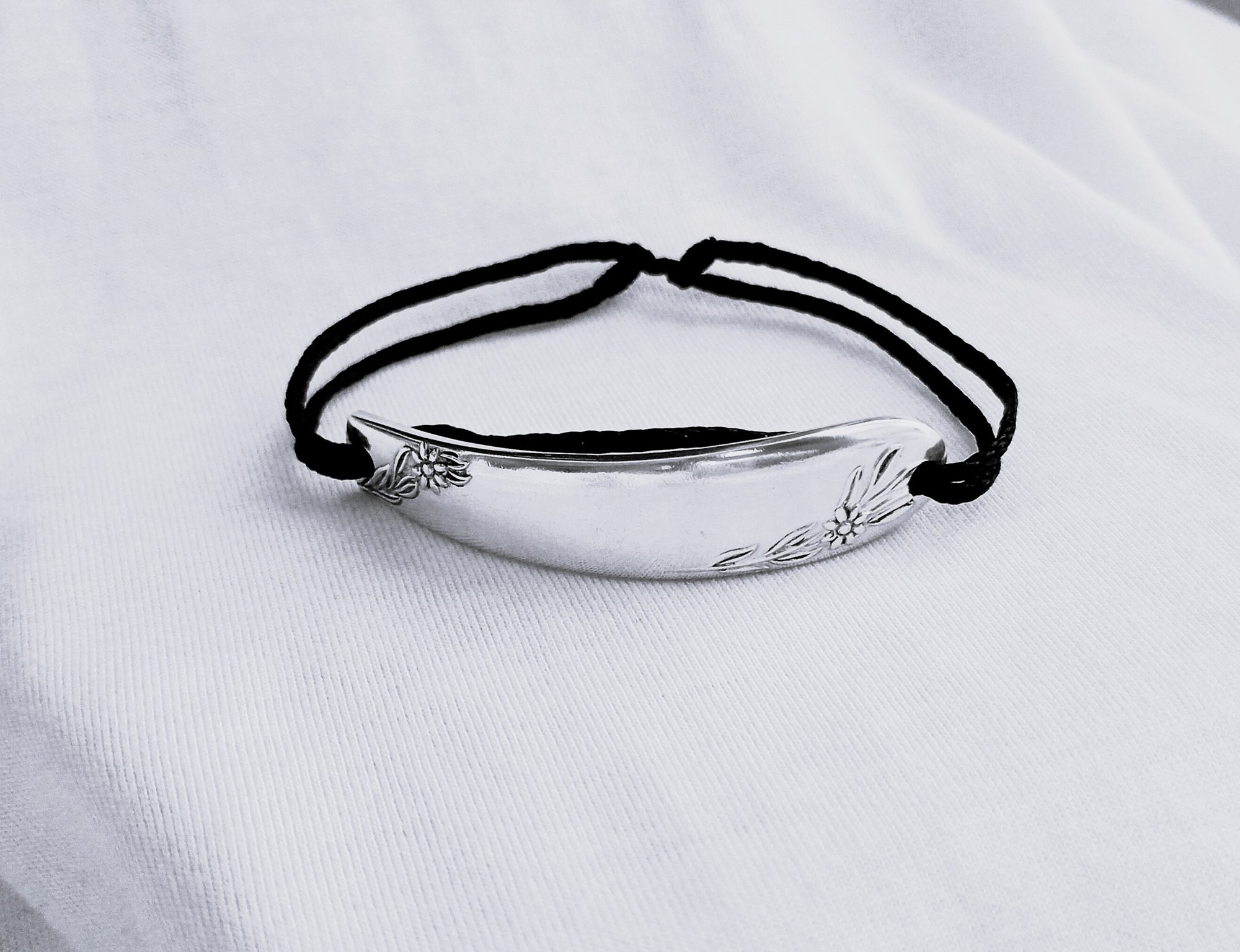 After cutting, smoothing and polishing, the handle is then threaded onto waxed cord, the joins are at the back and are full adjustable, making this simple bracelet the perfect fit for anyone. There are no loose dangly ends to get caught on anything.